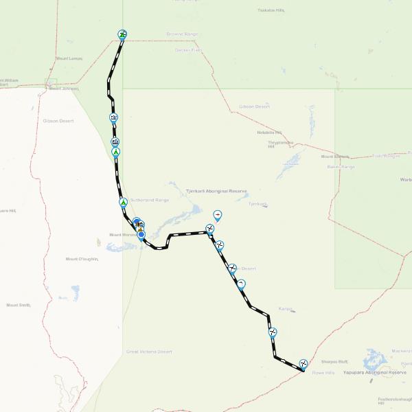 No fuel is available on the Hunt Oil Road. Nearest fuel locations are Warburton, Tjukayirla Roadhouse, Carnegie Station & Laverton.