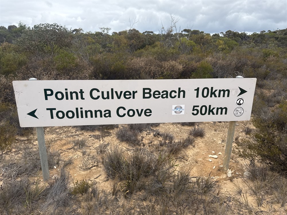 The trek retraces back to the Toolinna section/Caiguna track junction then north to Caiguna; 22km away, then onto Cocklebiddy via the Eyre highway. The last 10km is open and easy and is much more akin to Nullarbor Plains topography. You are then on the Eyre Hwy between Caiguna and Cocklebiddy. At Cocklebiddy seek directions to the Twilight Cove track as it is easy to miss in the maze of tracks behind the roadhouse.