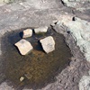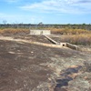 At around the 35 kilometre mark, on the eastside of that creek, leave the vehicle and follow the creek bed south to the remains of a small dam and rock cairn. North of the track at the same point are some stone footings of a building.
