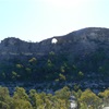 The 400m walk to Spyglass Peak leads past a long stone outcrop that looks like a man made rampart with spy holes and arrow slits. The track leads to the base of the peak, where a 10 meter diameter hole can be seen at its summit, you should allow plenty of time to explore around this area.